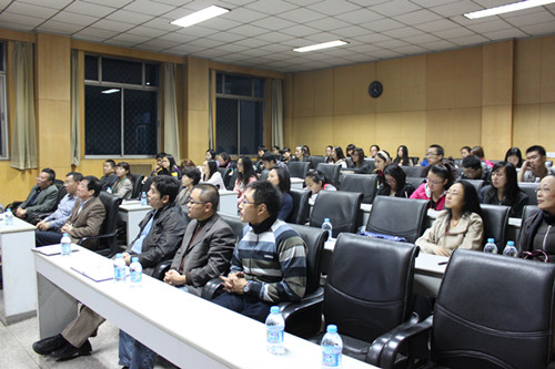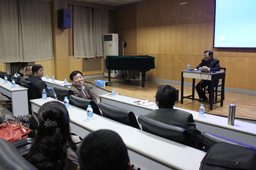 【音乐学系报道】2011年9月21日晚7点整,音乐学系特邀福建师范大学教授、博士生导师王耀华先生来我院作题为《中国传统音乐的结构特点及其哲学基础》专题讲座。本院师生约70余人聆听讲座。其中,有民乐系程天健教授、樊艺凤教授、基础部赵岩副教授、陕西教育学院王晓平博士,石油大学唐继凯教授,音乐学系的朴万里博士、牛玉冰讲师、司杨讲师、高贺杰博士等。