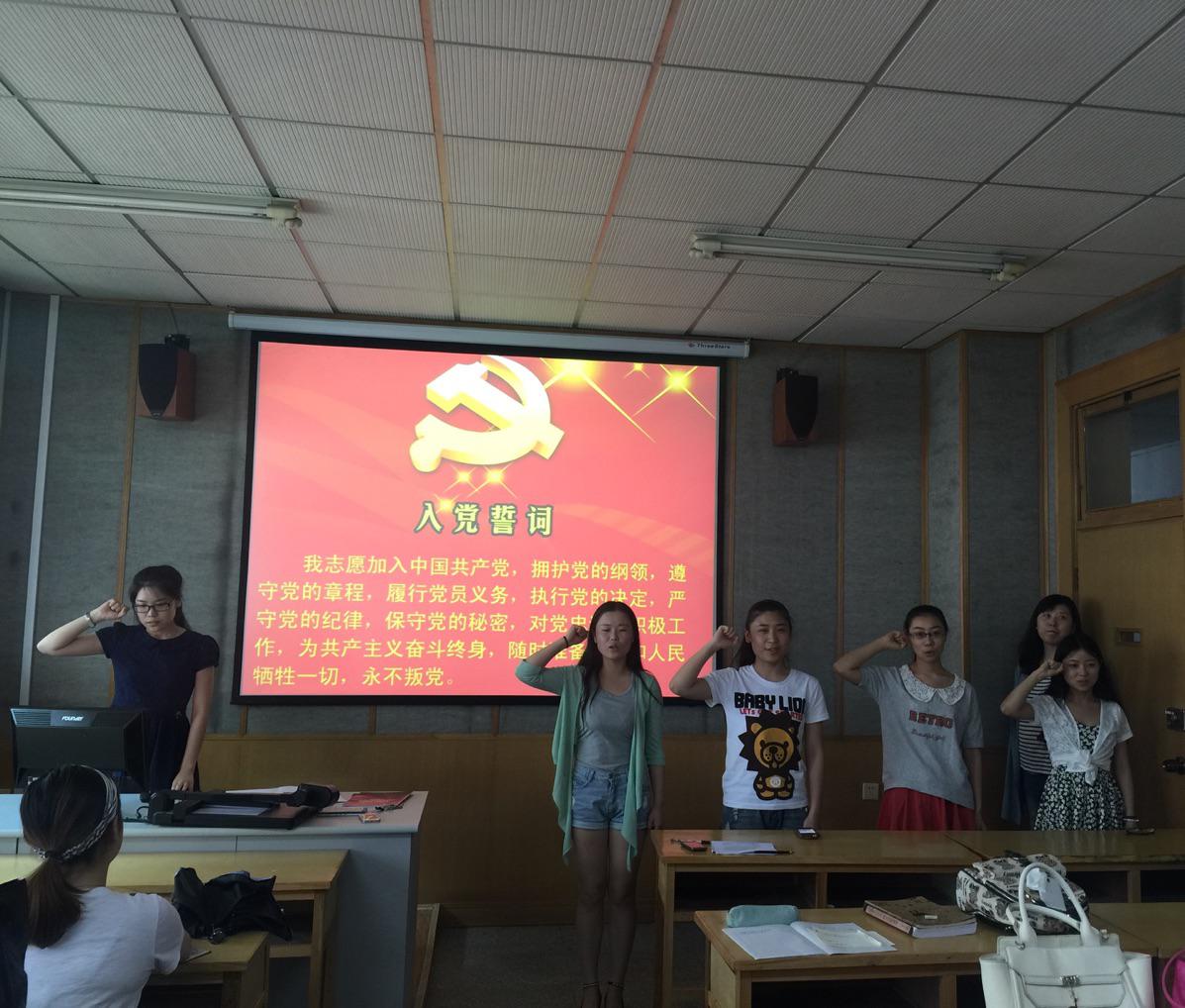 6月26日中午,音乐学系学生党支部在4—207召开支部大会,会议由学生党支部书记张琳老师主持,学生支部共17名正式党员、预备党员参加。会议内容包括:预备党员宣誓仪式;学生党支部改选;公寓文明宿舍、文明个人评比活动;毕业生党员教育、管理等四项主题开展会议。