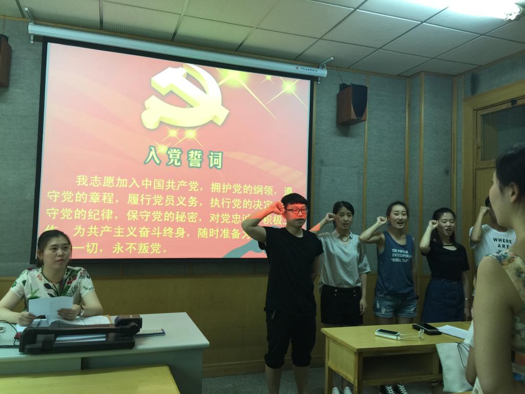 根据院学生党支部的考察、评议和谈话,选举产生了今年纳新名单,有13级魏婉君、张韶华、赵元园,14级李晶晶、陆鑫忆。并且,对几位入党积极分子做出了评价。其次,5名入党积极分子在学习、生活、思想、工作等方面对自己一一进行了介绍。正式党员对5名入党积极分子进行评议,投票,5名入党积极分子全票通过,成为音乐学学生党支部的一名预备党员。最后,进行预备党员宣誓仪式,在组织委员张警予的带领之下,5位预备党员进行了严肃的入党宣誓。
