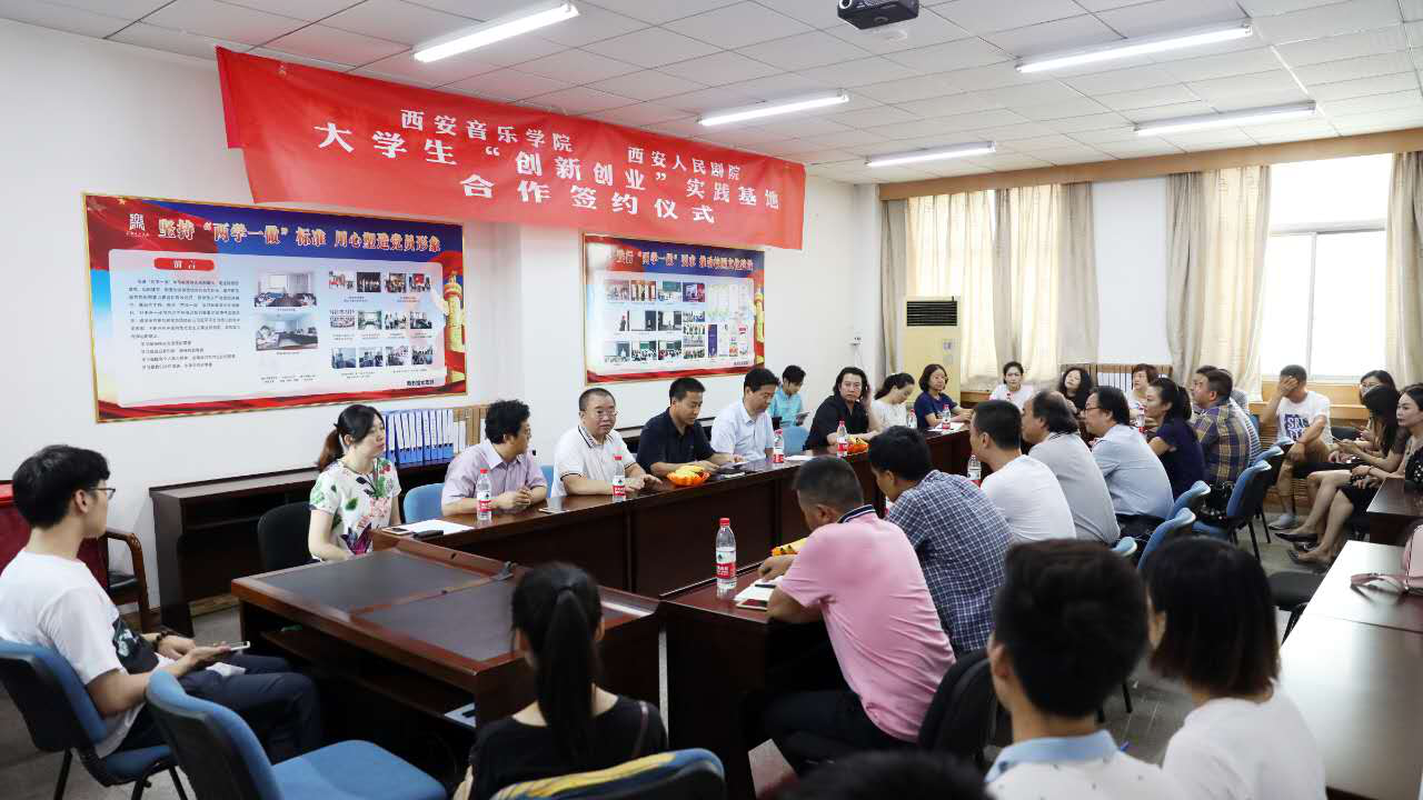 2017年7月4日上午十点三十分,西安音乐学院与西安人民剧院大学生“创新创业”实训基地合作签约仪式在西安音乐学院图书馆三层会议室隆重举行。