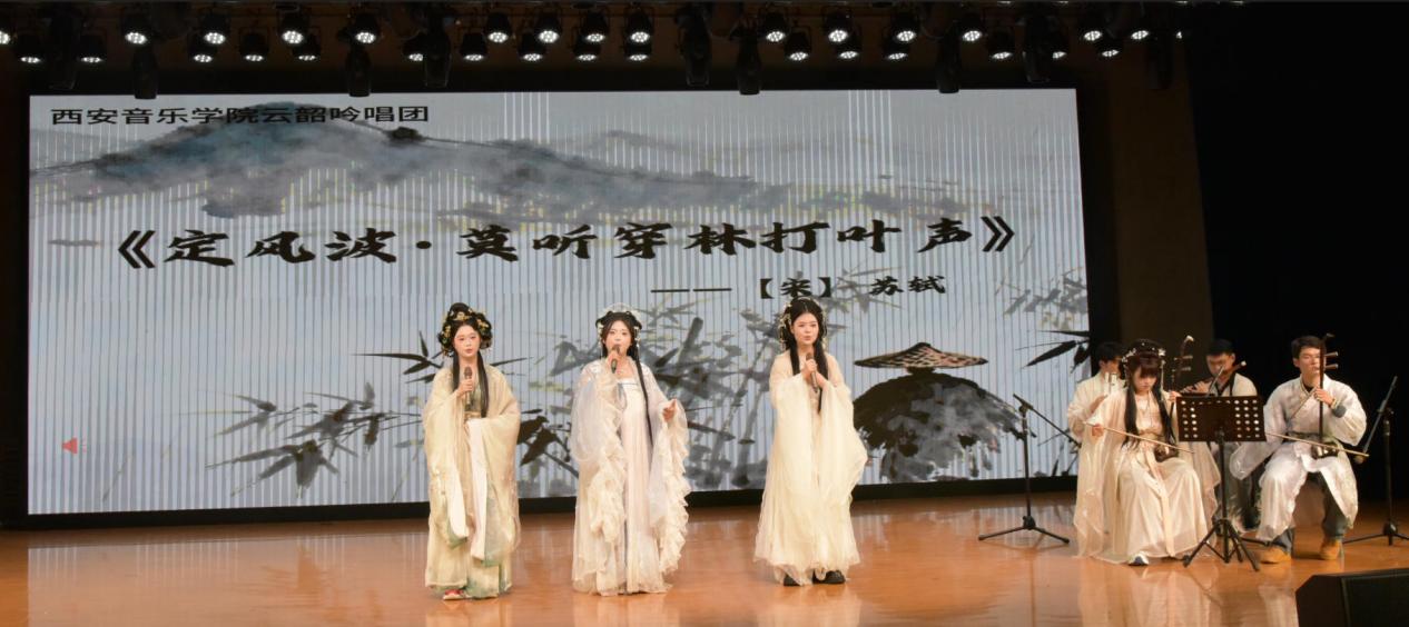 由人文学院教师闫赵玉指导组队,程天健教授担任学术顾问的云韶吟唱团,演绎了改编自《九宫大成南北词宫谱》的古谱诗词歌曲《念奴娇·赤壁怀古》《一剪梅》,与古诗词艺术歌曲《定风波·莫听穿林打叶声》,以新颖的音乐语言传递出中华诗词的声韵魅力。同时,由闫赵玉担任美育合作课程指导老师的西北工业大学启翔诗音阁,也在联吟大会上带来了诗词吟诵作品《旅夜书怀》《沧浪歌》《春江花月夜》,展现出跨校合作在社会美育与文化传承中的积极成效。