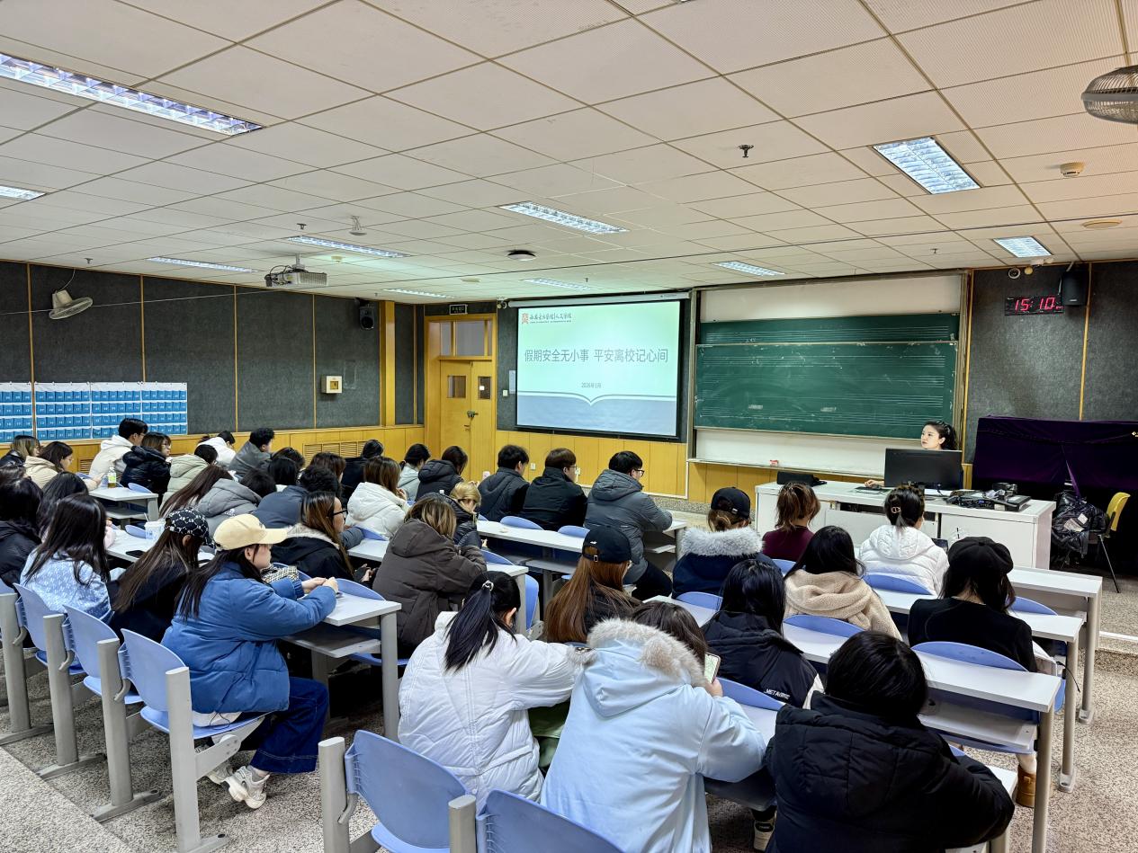 1月16日下午,辅导员面向学院学生开展“假期安全无小事 平安离校记心间”主题班会。班会内容涵盖假期交通安全、防诈骗、旅行安全、健康防护等多个方面。同时,提醒学生离校前做好宿舍断电、门窗落锁、贵重物品随身携带等具体工作。大家纷纷表示,将严格遵守学校与学院的安全要求,从离校前的“断电、整洁”做起, 平安开启寒假生活。