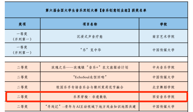 人文学院本科生团队以《乐界穿梭·非遗数轨:陕北民歌AI赋能计划》《<秦风π数据库>——基于陕西省音乐类非遗数字化保护与活态传承创新平台》荣获中国国际大学生创新大赛(2025)省级复赛获奖项目高教主赛道铜奖2项。