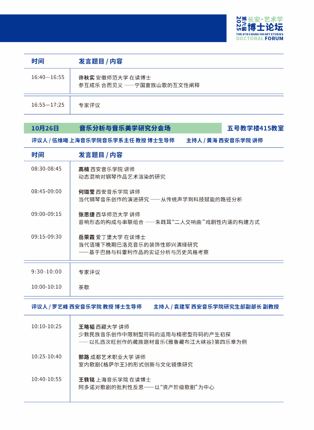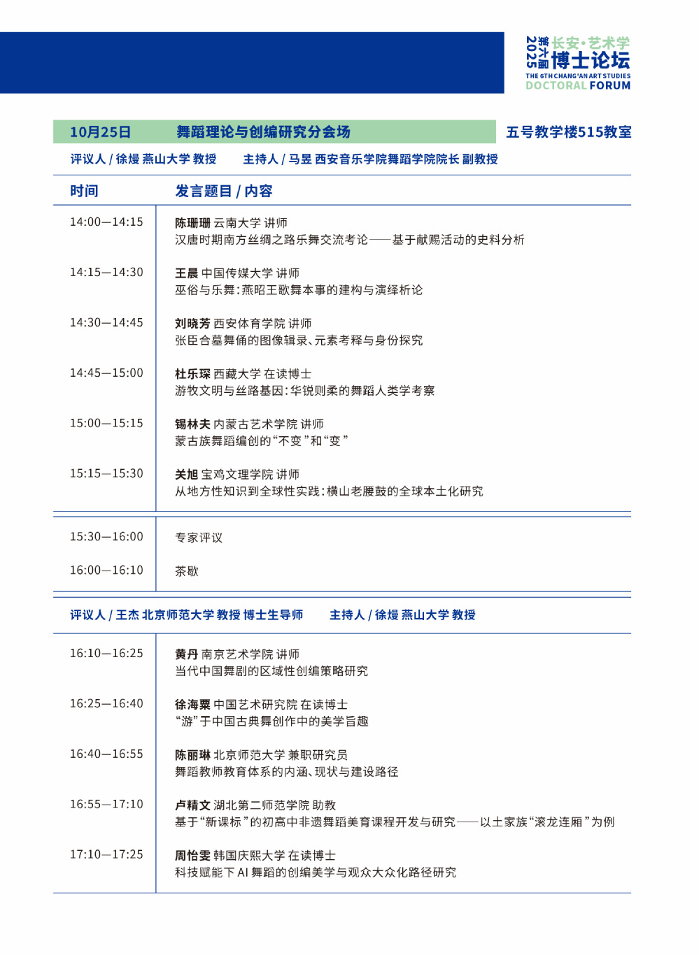 第六届长安·艺术学博士论坛议程