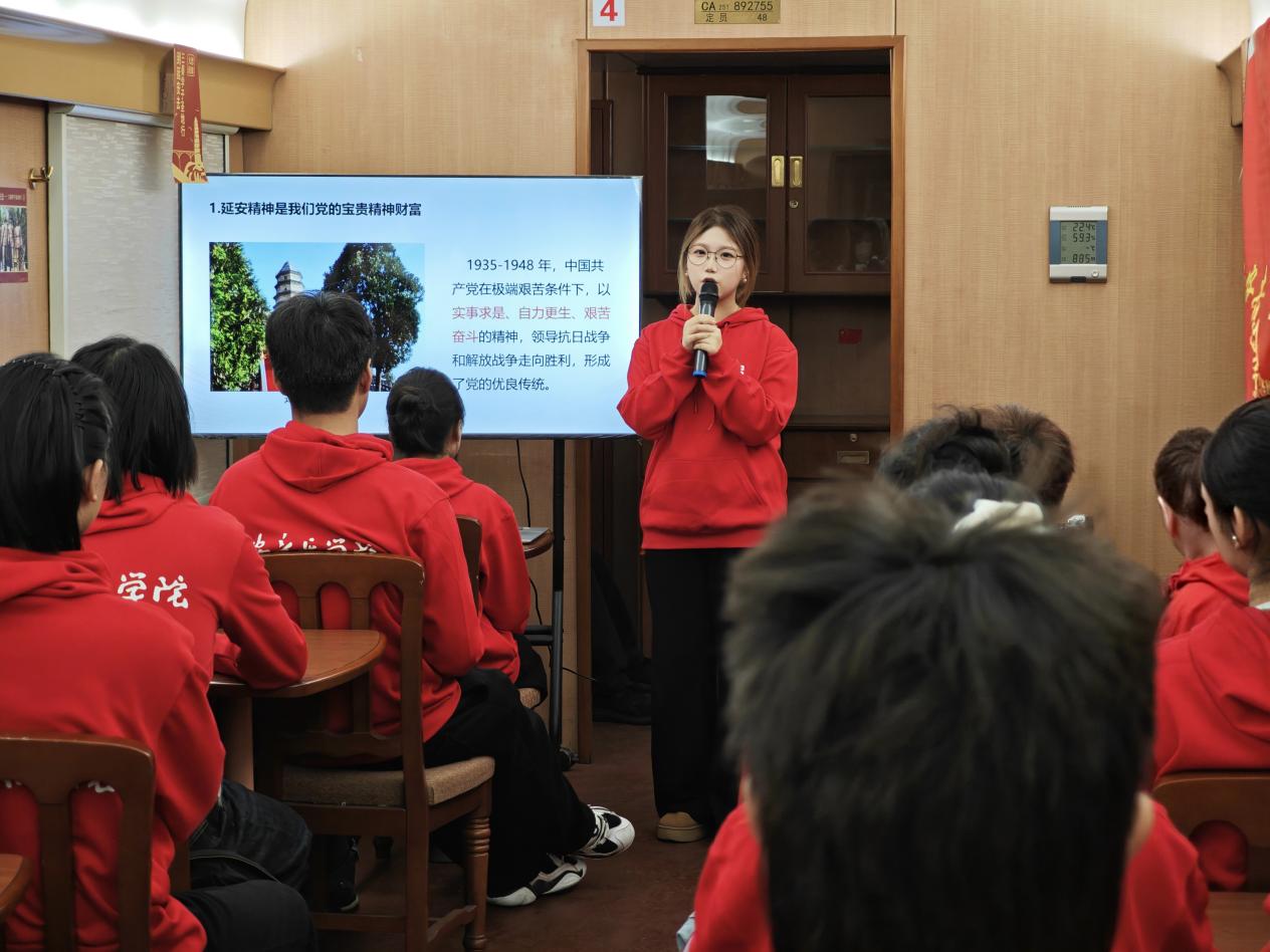 人文学院2024级非遗保护专业本科生辛怡然:出发时的列车上,我看着“列车上的思政课”课件站在车厢前排,把“1935-1948年共产党人靠自力更生、实事求是撑过苦日子”讲给同学们听。说到“纺车纺的不只是纱,是咬着牙的盼头”时,窗外黄土高原的沟沟壑壑刚好晃过——那瞬间忽然觉得,这哪儿是“红色研学”,明明是我们非遗保护专业学生找“老文化精神底子”的一趟路。走进枣园的窑洞,土墙上纺车的木纹磨得发亮,像我在非遗调研里见过的老凤翔泥塑模具纹路;梁家河知青旧居的土炕边,我摸着那把掉漆的老锄头,课件里“知青们建沼气池、挖井,把穷山沟变样”的文字突然有了温度。作为非遗保护专业的学生,我们攥着的不只是调研本和相机,更是当年纺车、锄头里攒下的那股“好好做事”的劲儿。往后做非遗记录、推文化传播,我想把这趟摸到的“底子”揉进去——让老文化带着延安的热乎劲儿,在今天的日子里接着活。