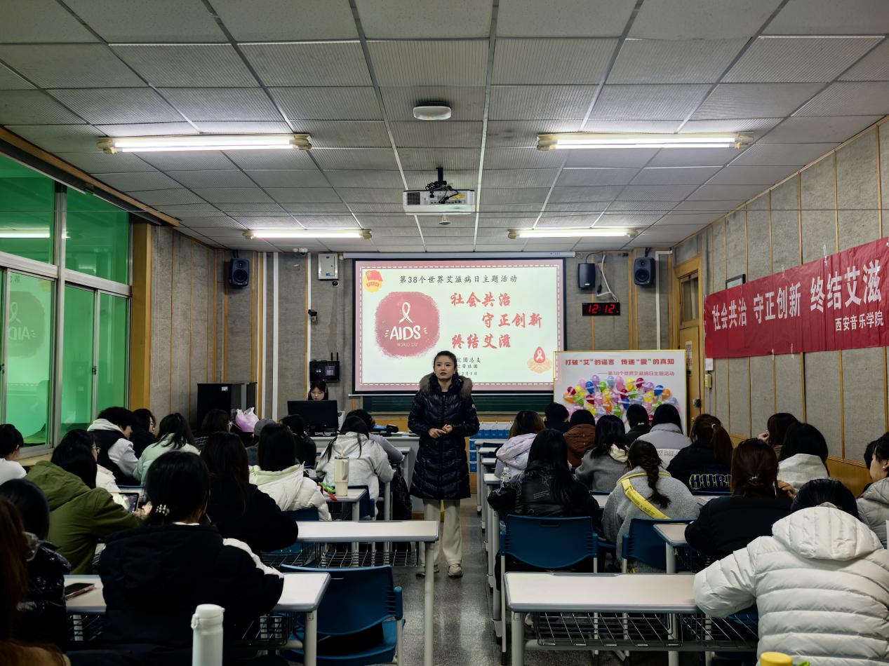 活动现场,老师向同学们发放了《西小艾 带你学防艾》世界艾滋病日宣传手册,团总支书记华夏系统阐述了艾滋病防治不是“遥远的话题”,而是与每位同学健康息息相关的“必修课”,了解科学的防艾知识,既是保护自己,也是对他人负责。随后,2023级团支书辛卓菡向同学们系统介绍了艾滋病的基本知识、传播途径、预防方法以及当前防治进展,结合青年学生群体特点,用通俗的语言破除认知误区,强调科学防护的重要性,引导大家树立科学防范意识,消除对艾滋病的误解与歧视。